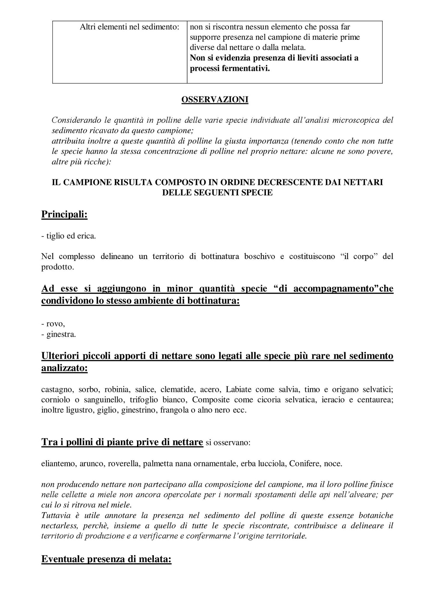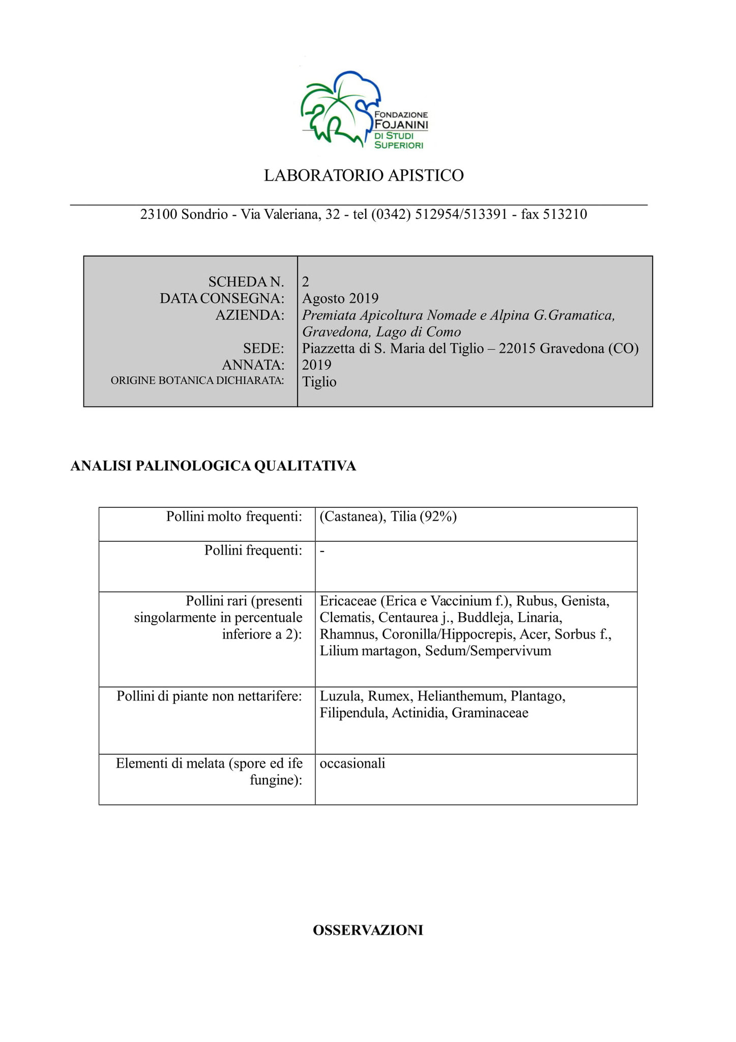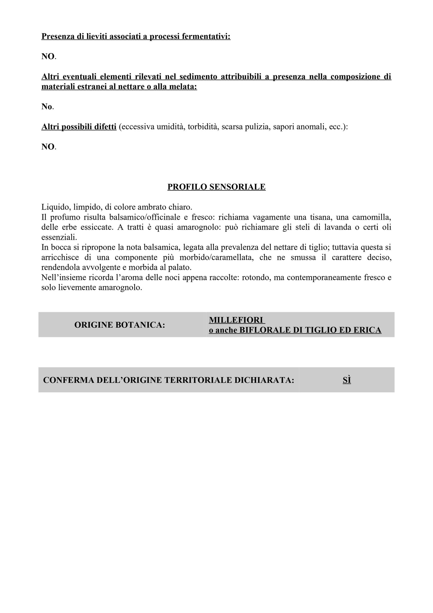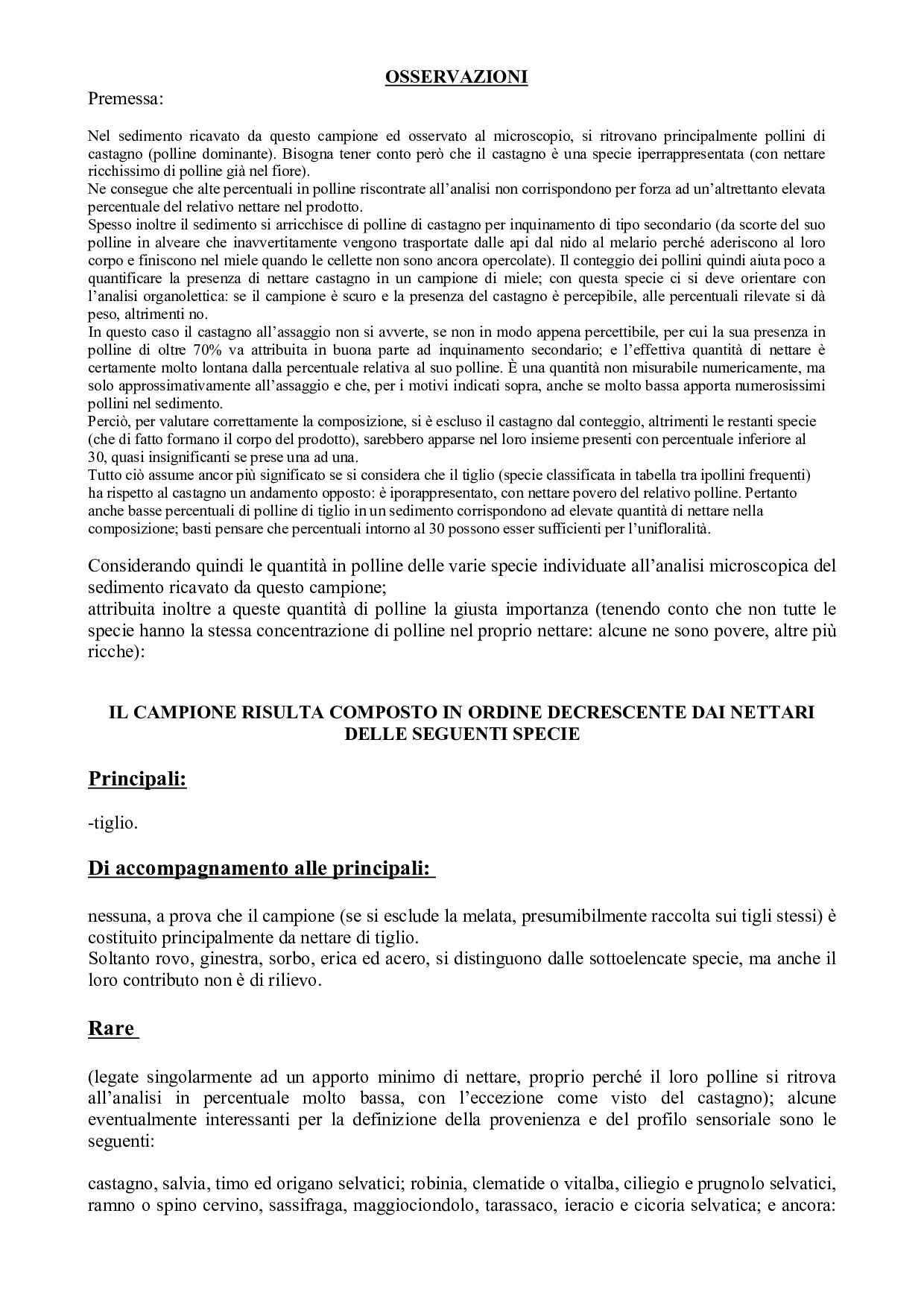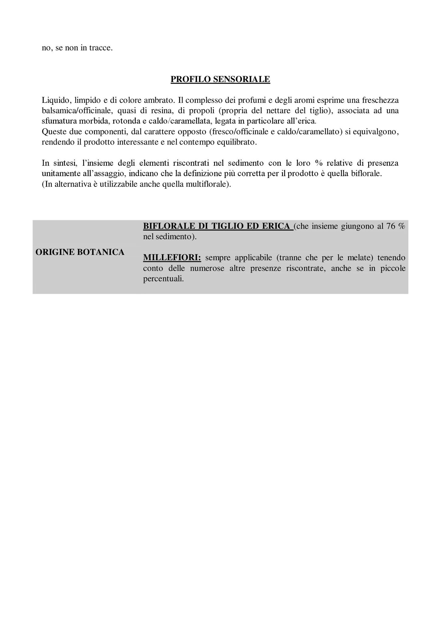 In ogni confezione viene acclusa la certificazione dell'origine botanica e l'analisi palinologica qualitativa dei mieli di Tiglio e Millefiori compiuta nell'agosto 2014 dal Laboratorio Apistico dell'Istituto FOJANINI di Sondrio. (vedi sotto)